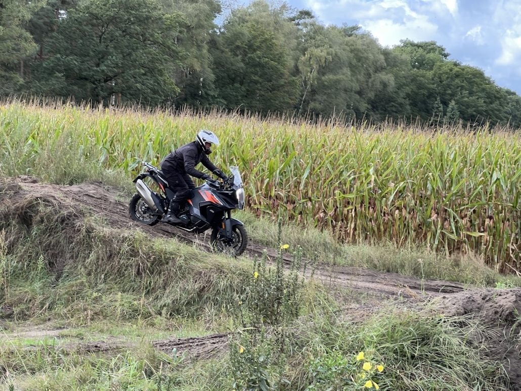 Je begint met een korte herhaling van stuurtechniek en remtechniek zodat je weer helemaal scherp bent. Tot aan de lunch vermaak je je in bospercelen waar je oefent in het rijden van bochten op hogere snelheid, single tracks en sterk geaccidenteerd terrein.